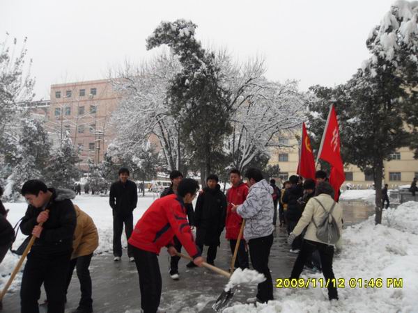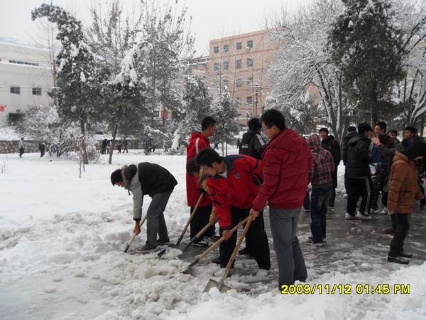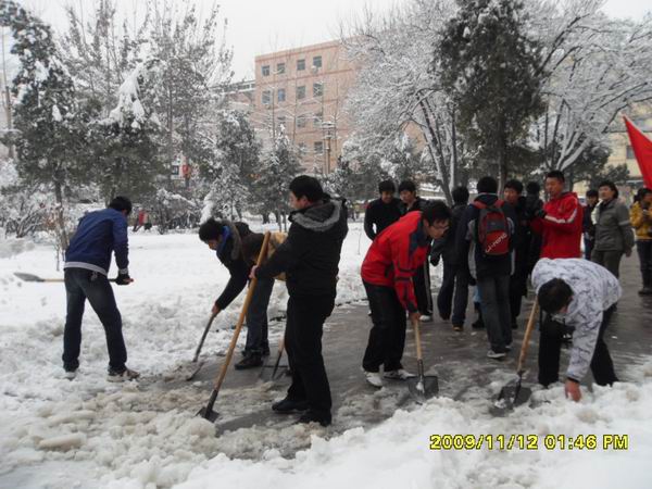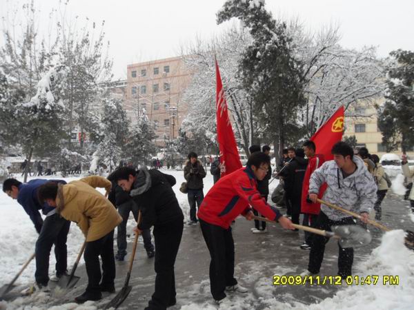 11月12日下午13:30,在澳门六合论坛 体育与艺术澳门六合论坛 院楼前,体育与艺术澳门六合论坛 团委、学生会开展了热火朝天的除雪活动。 罕见的大雪在11月12日渐渐停止飘落,中北校园里白茫茫一片,道路上积满了厚厚的雪,澳门六合论坛 团委副书记陈超、学生会主席于淼及主席团成员带领各部成员手拿铁锨笤帚等工具在院楼门前进行了除雪活动。天气很冷,可是并没能阻止大家的热情。雪层经过了两天的积压变得又硬又滑,但在众人的努力下一个个的雪块被不断掀起。 这次除雪活动不仅方便了交通出行,而且丰富了大家的课余生活,促进了团委、学生会成员的交流合作。