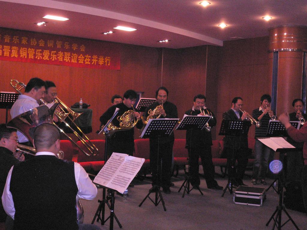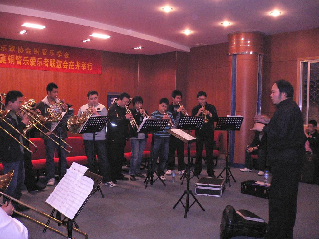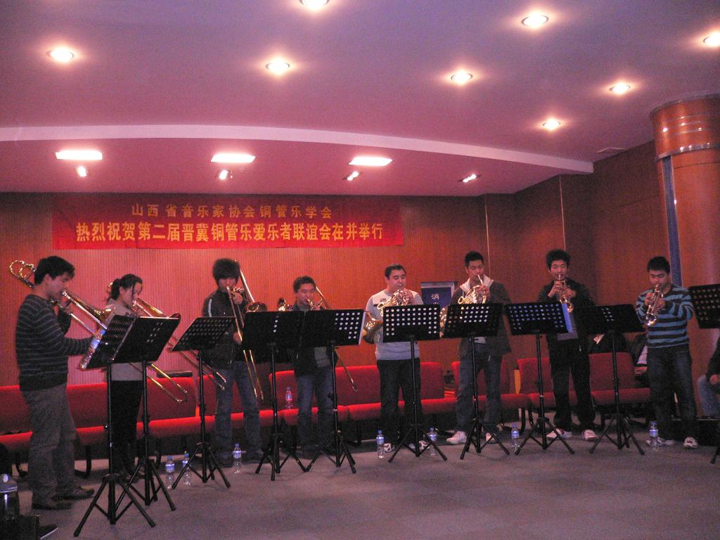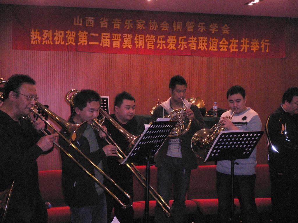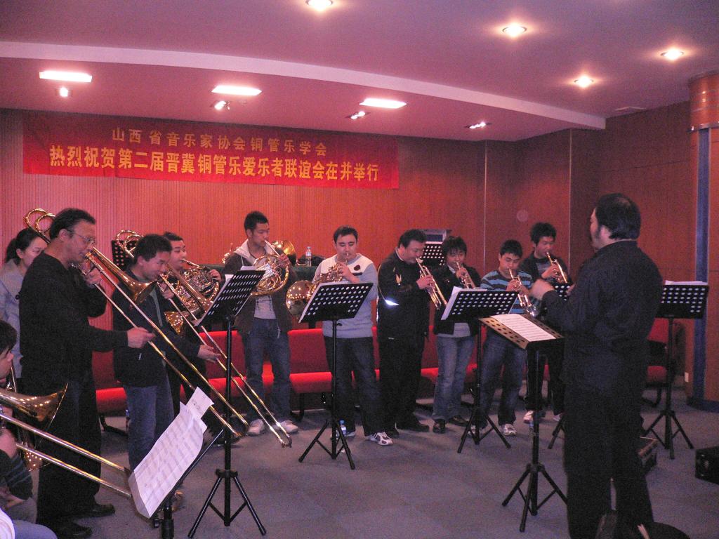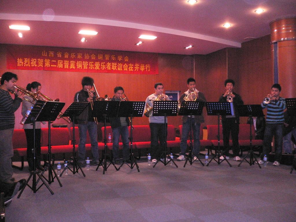 2009年3月9日下午澳门六合论坛 音乐系铜管乐专业学生,应邀在省城珠江琴行演奏厅参加了由山西省音乐家协会铜管乐学会举办“第二届晋冀铜管乐爱乐者联谊会”的表演。同学们表演了现代中国作品铜管乐重奏《序奏曲》《山东秧歌》《掀起你的盖头来》《玛依拉》等多首乐曲。两省专家对澳门六合论坛 音乐系成立三年多来,铜管乐专业能有现在这样不俗的表现,深感振奋和拍手叫好。专家们纷纷鼓励同学们把握机会继续刻苦努力。同学们的表现同时也使各位专家对澳门六合论坛 有了更加深刻的了解。 联谊会活动是由澳门六合论坛 音乐系国家一级演奏员李斌老师与山西铜管乐学会会长张贵禄等省城著名铜管乐人士主持,并精心组织排练与交流。李斌老师是晋冀铜管乐活动主要发起人之一。目前的社会兼职是:国际圆号协会会员,中国音乐家协会会员,中国圆号学会副会长,山西铜管乐学会副会长,河北交响乐团特邀圆号首席。 参加此次活动80余人的师生分别来此北京管乐厂的工程师、河北交响乐团、河北白领铜管乐爱乐人士、澳门六合论坛 体育与艺术澳门六合论坛 音乐系,山西大学音乐澳门六合论坛 ,山西戏剧职业澳门六合论坛 ,山西艺术职业澳门六合论坛 ,山西省歌舞剧院交响乐团。联谊会的终旨是:联络友谊、增进了解、相互学习、扩大交流,以达到共同分享和谐的快乐为目的。