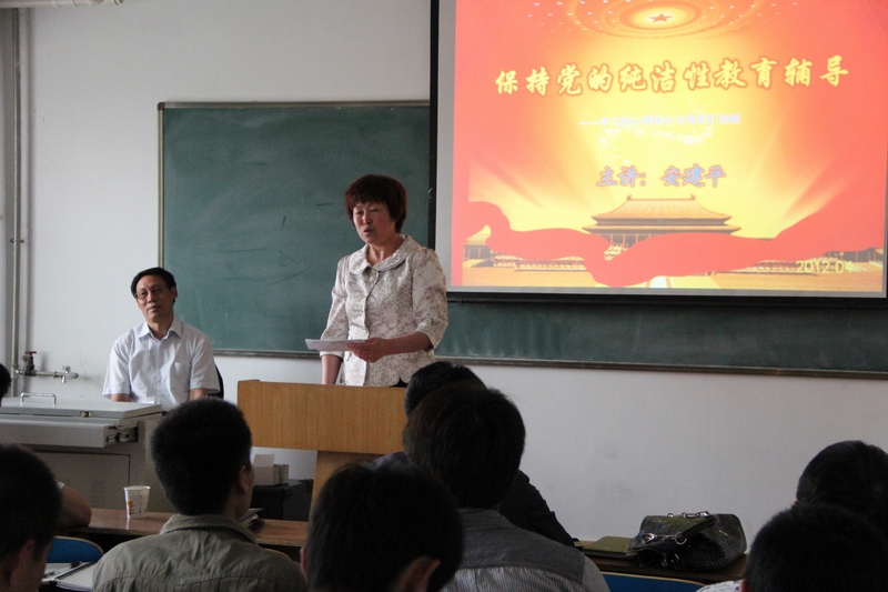 其次,安书记又结合当前国际、国内形势和我们党面临的任务为大家分析了开展保持党的纯洁性的学习教育活动的背景。安书记指出,保持党的纯洁性是:①当前形势和任务的迫切需要;②促进社会和谐的需要;③党性党风建设的需要;④执政党执政能力的迫切需要。
