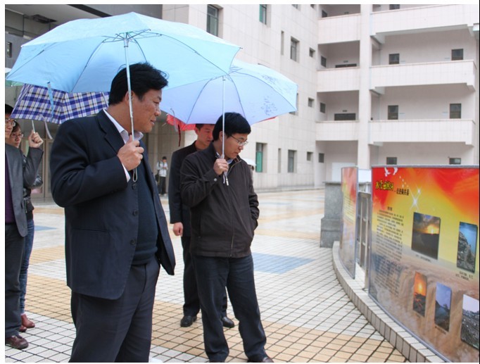 到场的领导有校党委副书记张惠选教授,校团委书记叶玉刚老师,以及各院团委书记。在观看展览时张惠选书记强调,大学生社会实践在与群众广泛接触、了解、交流的过程中能够得到真切的感染和体验。从无数个活生生的典型事例中受到深切的启示和教育,是思想得到升华,社会责任感增强。在展览过程中实践队员与校领导有广泛的交流,实践队员对暑期社会实践有了更好的认识,也为以后社会实践吸取了经验。
