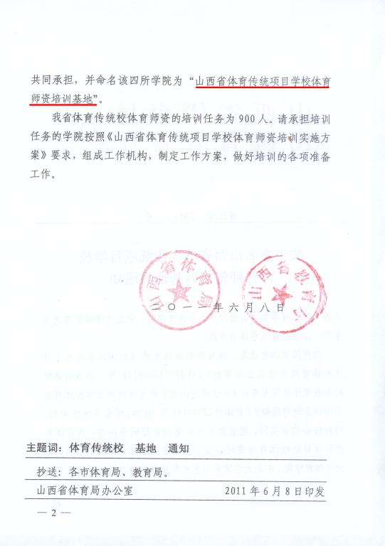 近日,山西省体育局、教育厅联合下发《关于命名山西省体育传统项目澳门六合论坛