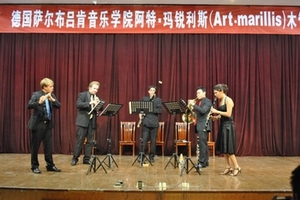 阿特·玛锐利斯木管重奏组,由长笛演奏与室内乐演奏双硕士研究生:克里斯提安·鲁恩克(德国人,曾获得“德国青年音乐家”独奏和重奏双冠军),双簧管演奏与室内乐演奏双硕士研究生:马克西姆·马尔科夫(乌克兰人,曾获得“乌克兰洛夫诺国际木管重奏”第一名和“Allegro Vivo”音乐节第一名),单簧管演奏与室内乐演奏双硕士研究生:马卢·加罗法洛(女,卢森堡人,是“雅马哈音乐基金会”奖金获得者,并多次在卢森堡欧洲国际音乐家比赛和罗马音乐家比赛中获奖),圆号演奏与室内乐演奏双硕士研究生:李涛(中国太原人,在中国圆号学会举办的比赛中获得优秀表演奖),巴松演奏与室内乐演奏双硕士研究生:里卡多·奥利为拉·奥雷利奥德(巴西人,获得德国的DAAD奖学金,并在多次比赛中获奖)五位年轻的音乐家组成。