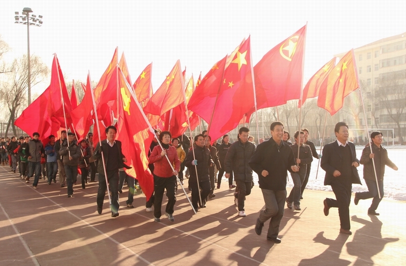 本次大赛分为红色传递组和爱国竞赛组,超越极限组,三组均以院为单位,红色传递组以传递“12.9红色革命”精神为主旨,由各院包括青年教工党员、学生党员、专职团干部、入党积极分子、学生骨干、学生团员等组成的庞大队伍携带鲜艳的红色袖标。由院领导或学生会主席举着红旗带队,贾校长、张书记站在队伍排头,裁判员鸣枪后大家快速起跑。尽管已入寒冬,但同学们的激情却堪比盛夏,田径场上一片沸腾,叫好声,鼓励声,声声入耳,声声激动人心。